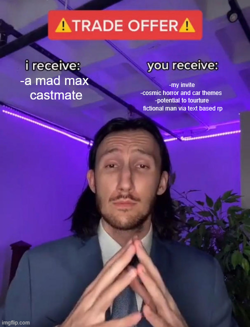 [wanted]: I'd literally be happy as a clam with any Mad Max cast in tyool 2025 BUT special shout outs for Deadbeat Dad (Dementus), Influencer/War Criminal (Joe), Australian Solid Snake (Praetorian Jack), the tallest little guy (Nux), any of the Sister Wives, and OF COURSE the man, the myth, the legend himself, Mr. Max Rockatansky.